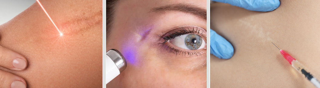 Los tratamientos para las cicatrices varían según el tipo y la severidad, e incluyen opciones médicas, quirúrgicas y tópicas. Los tratamientos médicos incluyen inyecciones de corticoides, láseres (CO2, luz pulsada, láser azul), rellenos dérmicos y crioterapia para queloides. Las opciones quirúrgicas abarcan la extirpación, injertos de piel, y cirugías de colgajo, mientras que los tratamientos tópicos y no invasivos comprenden parches y láminas de silicona, dermoabrasión, y peelings químicos.